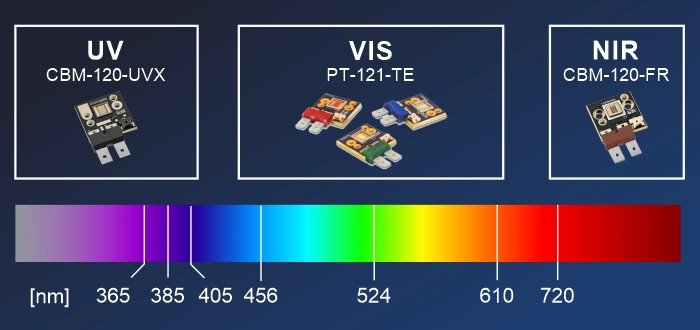 ViALUX offers high-intensity LEDs and corresponding driver solutions engineered for industrial and scientific applications. Our STAR 3.0 EVM modules integrate high-power monochrome LEDs - in VIS, UV, or NIR ranges - with an intelligent LED driver capable of delivering up to 24 A, controlled via I²C for precise current setting and thermal monitoring. Additionally, our HLD2 LED driver board enables up to 30 A continuous current in a compact form, providing real-time feedback on voltage, current, and temperature, with interfaces like USB, I²C, and UART for seamless integration.